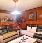 - Salon chaleureux : Avec murs lambrissés en bois et une cheminée.